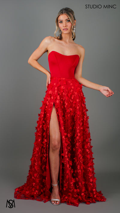 Poetry - Cherry Red formal dress | Sequin Floral V neckline fitted backless mermaid lace up