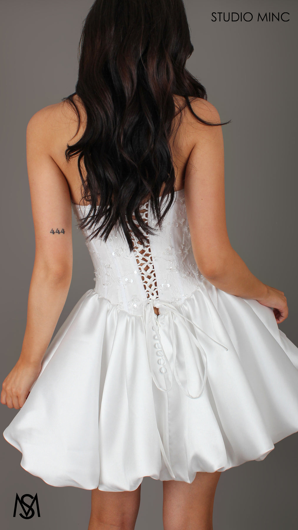 The Lumi mini was made to celebrate in ultimate bridal style! From hens and bachelorette to wedding reception, the 'Lumi' mini is a statement piece with incredible luxe details. Lumi is without a doubt the bridal mini that will give you an unforgettable second look for your unforgettable night!