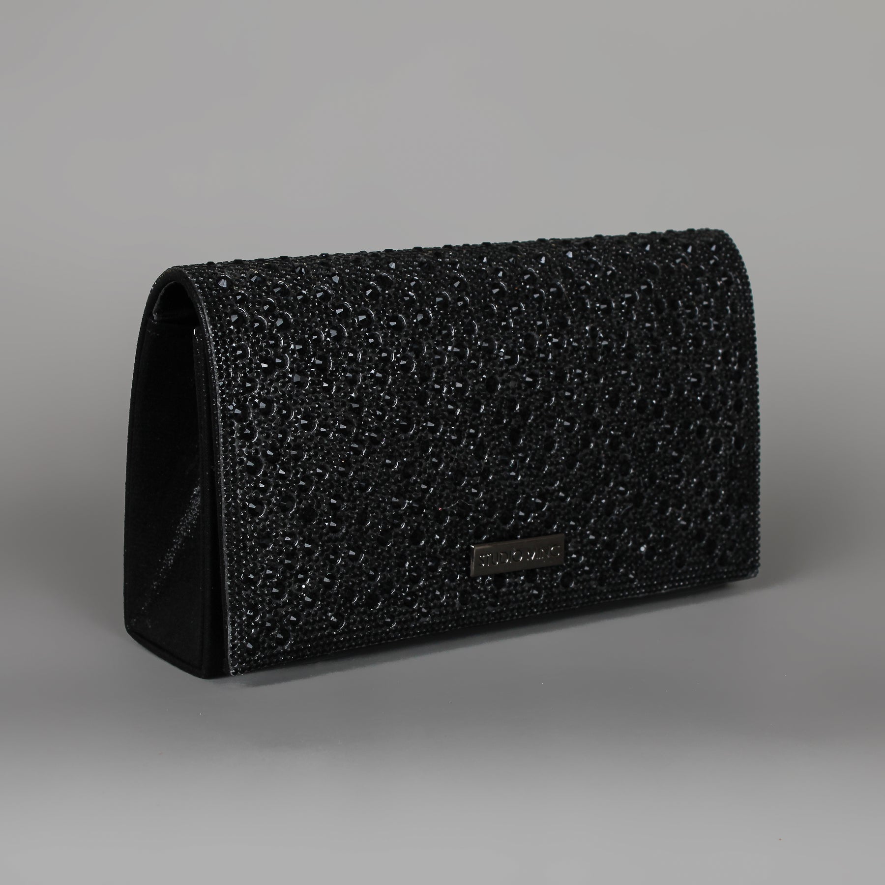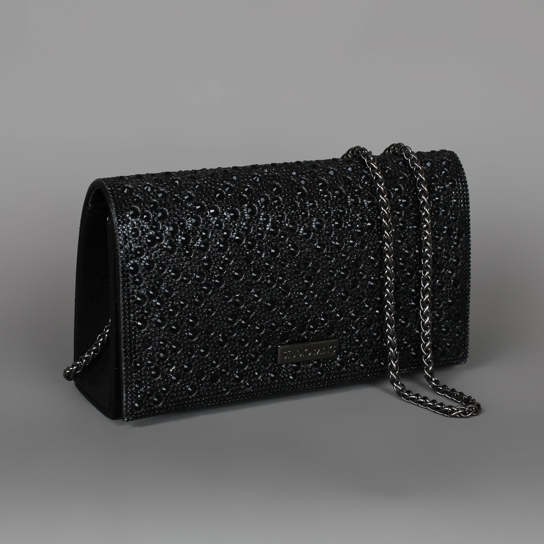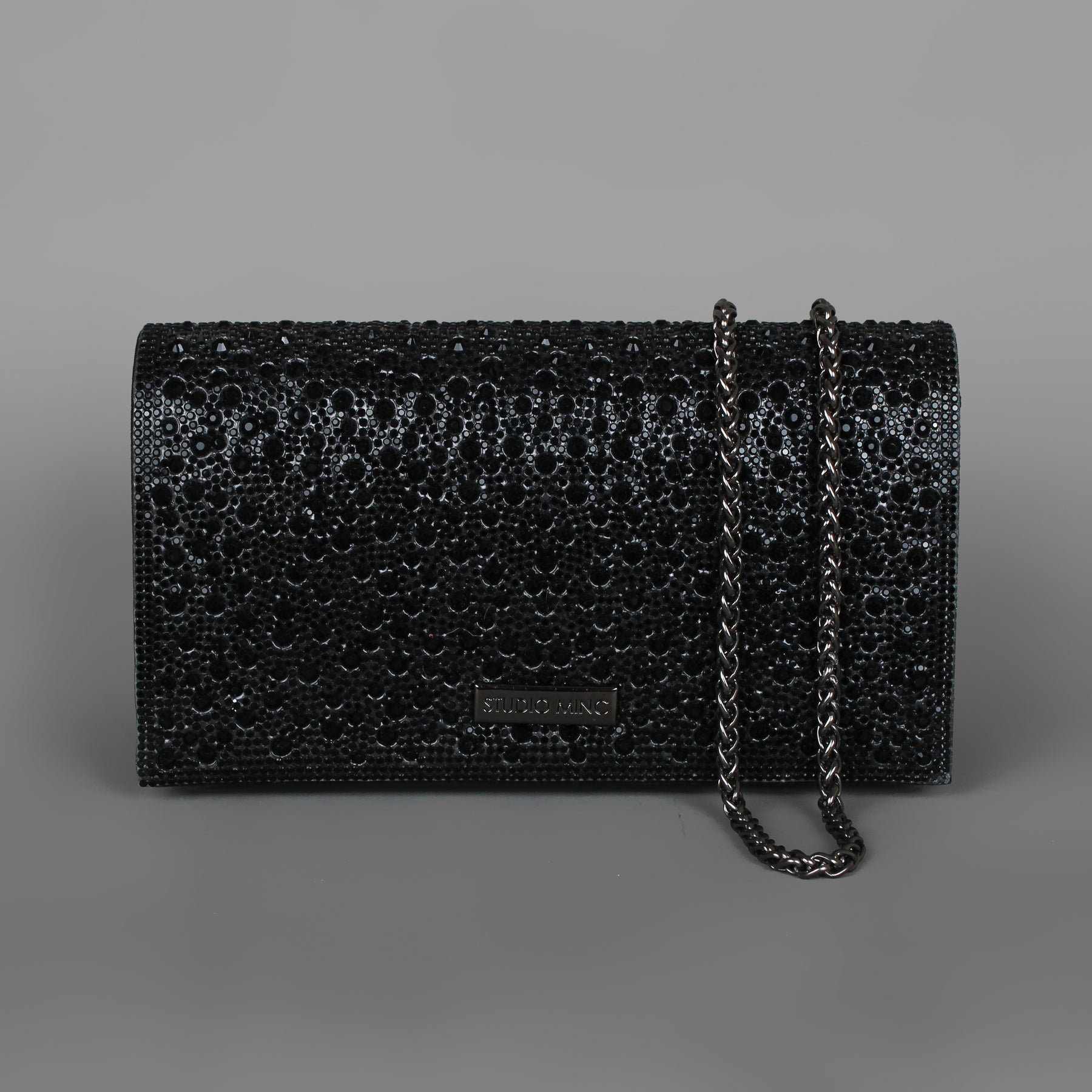 STUDIO MINC Rhinestone embellished clutch with magnetic press stud closure and shoulder chain.